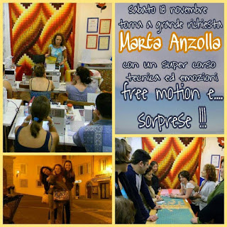 Questa volta due giornate presso due negozi che mi sono molto cari, con due progetti diversi perchè amo diversificare, due progetti che spaziano dalla tecnica del free-motion all’uso di carta e colori, pagine di stoffa che vi faranno tornare bambine…..