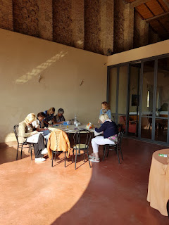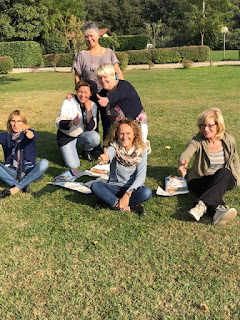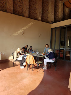 Soffitti in legno, spazi enormi, e noi a lavorare tra sole e ombre….c’è chi il sole lo vuole tutto… Sembra proprio un meriggio di fine estate, come quelli di una volta con quell’atmosfera di benessere, di stare bene a cucire, felici di questi momenti, dimentiche di tutto solo di vivere questi attimi.