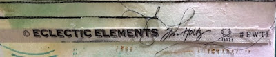Mi è piaciuto molto lavorare in un modo piuttosto zen, con poche cose e pochi colori, ma con una bella energia perchè quel muro tutto crepato mi dava l’idea di tante vie da prendere, di tante idee da sviluppare, di viaggi…e quei piccoli punti così leggermente colorati ma esistenti…lì a prendere posizione nella pagina…cose da fare…e la strisciolina che ha dato l’idea : “Eclectic Elements”…